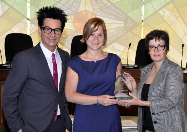La ville de Sorel-Tracy et l’Association pulmonaire du Québec (APQ) ont souligné le courage et la détermination de Mélanie Duclos, hier à l’hôtel de ville. Le maire Serge Péloquin et la directrice générale de l’APQ, Dominique Massie ont remis à la soreloise d’origines une plaque commémorative pour la création et l’organisation de La course de l’espoir de Sorel-Tracy.