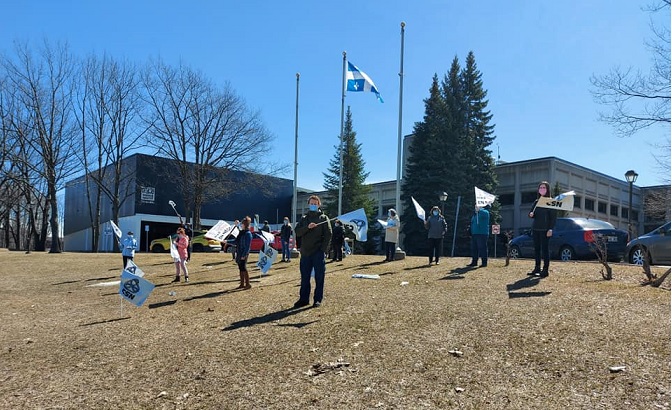Alors que les conventions collectives sont échues depuis un an et que les négociations n’avancent pas, le personnel de soutien du Cégep de Sorel-Tracy a manifesté devant l’établissement, hier, pour dénoncer le peu d’intérêt de la partie patronale à améliorer réellement les conditions de travail et pour soutenir le comité de négociation du Secteur soutien cégeps lors des rencontres de négociation avec l’employeur. « Nous commençons de plus en plus à voir des gens quitter le réseau pour aller travailler ailleurs. Nous avons de plus en plus de chaises vides et cela occasionne une surcharge de travail pour les travailleuses et les travailleurs qui restent. Il va falloir un sérieux coup de barre pour changer ça » affirme Martine Moreau, présidente du SEESCST. « On voit (..) que les patrons ne sont pas là du tout. Non seulement le rythme des négociations est très lent, mais, en plus, les patrons n’ont que des demandes de reculs à proposer. C’est comme s’ils ne remarquaient pas que la situation s’aggrave sur le terrain », se désole madame Moreau.