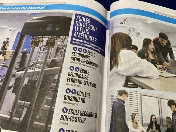 Le Centre de services scolaire de Sorel-Tracy a toujours affirmé ne pas prêter foi au Palmarès des écoles du Journal de Montréal. Or voilà que la dernière édition de ce palmarès, publiée en fin de semaine, est porteuse de bonnes nouvelles pour l’École secondaire Fernand-Lefebvre. L’établissement d’enseignement est présenté par le quotidien montréal comme l’un de ceux qui se sont le plus améliorés. L’ESFL est passée du 391e rang cumulatif depuis 5 ans au 316e rang sur 468, voyant sa cote globale croître de 3,6 à 5,2 sur 10. Ce sont les résultats de 2022 qui ont été utilisés pour dresser ce palmarès puiqu’il faut une année complète au ministère de l’Éducation pour fournir les données permettant de le réaliser.