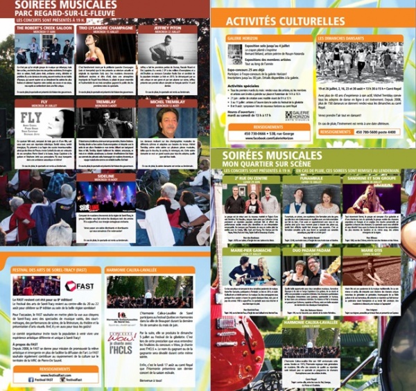 Également, plusieurs concerts sont à surveiller dans le cadre des soirées musicales au parc Regard-sur-le-fleuve et Mon quartier sur scène.