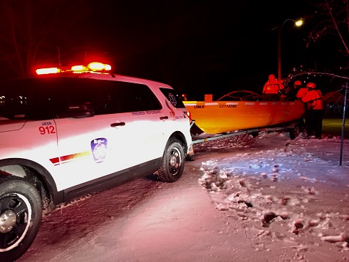 Des pompiers du Service de protection et d’intervention d’urgence de la Ville de Sorel-Tracy se sont lancés en embarcation sur les eaux glacées du fleuve, vers 17h, ce soir. Ils allaient prêter main-forte à leurs collègues de la MRC de d’Autray pour une mission de sauvetage qui a été, plusieurs minutes plus tard, annulée. On a conclu que l’incident rapporté, une personne tombée à l’eau, n’était rien de moins qu’un vulgaire canular. Le lieutenant Barbin du Service de protection et d’intervention d’urgence de la Ville de Sorel-Tracy :