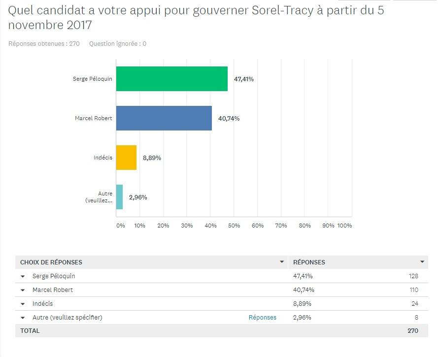 Une seule question était posée : Quel candidat a votre appui pour gouverner Sorel-Tracy à partir du 5 novembre 2017?