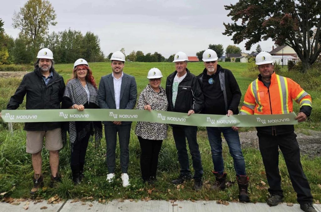 La mairesse d’Yamaska, Diane De Tonnancourt, et des membres de son conseil ont procédé, ce matin, avec le promoteur Karl Moussette, à la première pelletée de terre du projet domiciliaire La promenade du Roseau. Projet de 38 unités d’habitations unifamiliales jumelées avec possibilité de logement accessoire au sous-sol, le développement se posera parallèlement et derrière la rue J.-B.-St-Germain, vers le village. Des maisons de 1 et 2 étages y seront disponibles pour location ou pour option d’achat avec droit d’occupation. Le promoteur fait état de 3 1/2 à 5 1/2, de plusieurs modèles disponibles et d’une vue sur la rivière Yamaska. Les travaux débuteront au cours de la semaine prochaine.