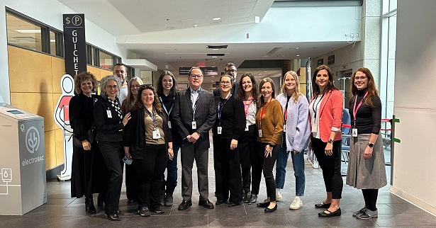 (Photo: page Facebook du CISSS de la Montérégie-Est / L’équipe des communications et des membres de la direction entourant M. Gagné à l’Hôpital Pierre-Boucher)