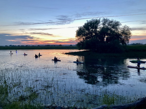 L’ensemble de la population était invitée à venir célébrer l’ouverture de la quatrième édition du Défi en participant à une soirée chaleureuse et festive. Les invités ont eu la possibilité de faire de la planche à pagaie au coucher du soleil. Le défilé de planchistes a débuté vers 19h. Près de 70 personnes y ont pris part alors qu’une centaine de personnes ont fait acte de présence.