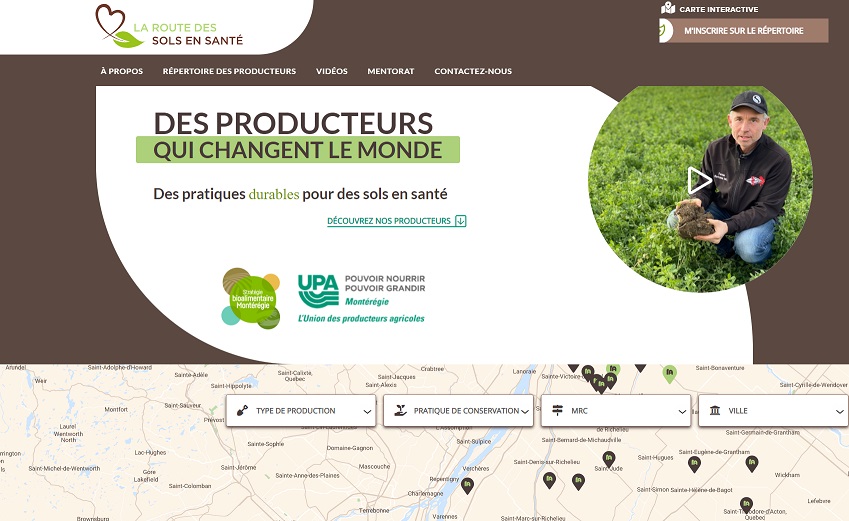 La Fédération de l’UPA de la Montérégie, en partenariat avec Stratégie bioalimentaire Montérégie, invite les productrices et producteurs agricoles ainsi que les citoyennes et citoyens de la Montérégie à visiter le nouveau site Web « La Route des sols en santé » à l’adresse suivante : upamonteregie.ca/routedessols.