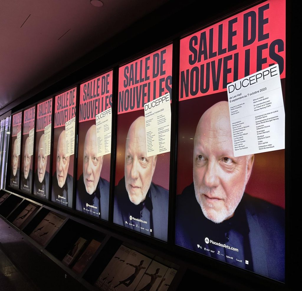 (Myriam Arpin) J’ai assisté à la première médiatique de « Salle de nouvelles » chez Duceppe jeudi dernier. Cette pièce de théâtre est adaptée du film multi-oscarisé de 1976 « Network ». Marie-Josée Bastien, qui assure la mise en scène ce spectacle, affirme que l’œuvre se veut une «critique de l’infodivertissement» et apparaît «prophétique tant elle est pertinente.» Denis Bernard est magistral sur scène et le reste la distribution est aussi extraordinaire: Mustapha Aramis, Sylvio Arriola, Charles-Étienne Beaulne, Emmanuel Bédard, Florence Blain Mbaye, Luc Bourgeois, Gabrielle Côté, Hugues Frenette, Eliot Laprise, Marie Michaud, Marie-Eve Pelletier. À voir jusqu’au 7 octobre.