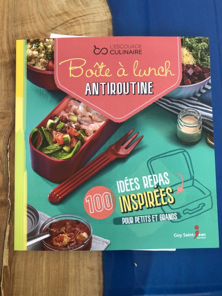 Je suis toujours en panne d’idées lorsque vient le temps de choisir mes lunchs pour la semaine. Voici un magnifique livre, à l’aube de la rentrée: Boite à lunch antiroutine – 100 idées repas inspirés pour petits et grands. Sonia Lizotte, de L’Escouade culinaire, nous propose une centaine de recettes originales, simples et savoureuses. C’est vraiment bien fait et j’ai tout de suite adoré ce livre dès les premières consultations.