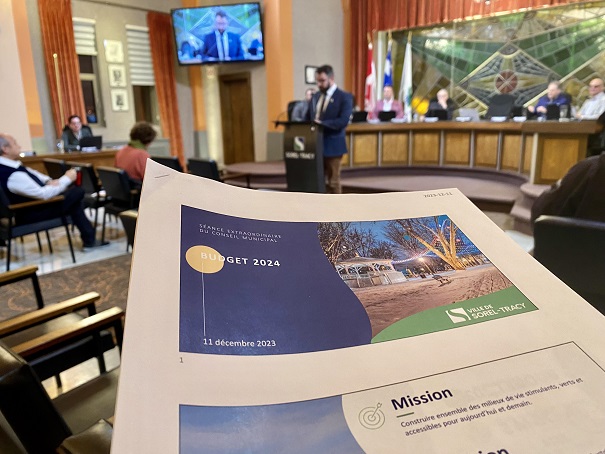Le conseil municipal de Sorel-Tracy a adopté, ce soir, le budget de la Ville pour la prochaine année. Le taux de taxation résidentiel, incluant la dette, sera de 0,86$ du 100$ d’évaluation, comparativement à 0,83$ en 2023, une hausse de 4 %. Pour une maison moyenne, évaluée à 253 212 $, le compte de taxes sera, en 2024, de 2 722 $, 104,70 $ de plus qu’en 2023. Le conseil a dû composer avec l’inflation et une augmentation importante du coût des biens et services de la part de ses fournisseurs. Il accouche, dans les circonstances, estime le maire Patrick Péloquin, d’un budget raisonnable et responsable.
