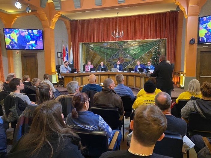 La cérémonie publique d’assermentation du nouveau maire de Sorel-Tracy, Patrick Péloquin, et du nouveau conseiller du district Des Patriotes, Mathieu Gagné, a attiré plus de spectateurs qu’attendus, lundi soir. Une bonne partie de la salle des délibérations était occupée par les cols bleus de la Ville. Ils ont voulu rappeler au conseil qu’ils sont sans contrat de travail depuis le 31 décembre et que les négociations n’avancent pas. Leur réclamation : 25 % d’augmentations salariales sur 5 ans, soit 5 % par année. Dany Chamberland est secrétaire trésorier au Conseil central de la Montérégie :