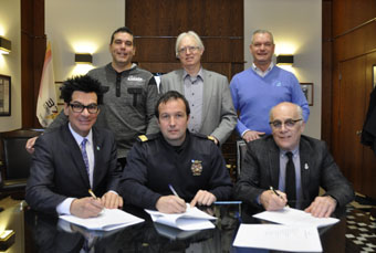 Première rangée : Le maire Serge Péloquin, Bruno Isabelle, président de l’Association des cadres de la Ville de Sorel-Tracy (ACVST), Marc Guévremont, directeur général par intérim; deuxième rangée : Benoît Préville, secrétaire-trésorier de l’ACVST, François Leprévost, directeur des Ressources humaines et Pierre Cournoyer, vice-président de l’ACVST.