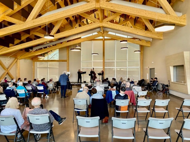 Les usagers du Centre de Jour de Sorel ont eu droit à un spectacle vendredi. Ils ont pu apprécier le talent du trio Sophie Lemaire. La prestation était présentée au Centre de services municipaux de Sainte-Anne-de-Sorel grâce au concours de la Maison de la musique de Sorel-Tracy et de la Société pour les arts en milieu de santé. Geneviève Piché, technicienne en loisir au Centre de Jour :