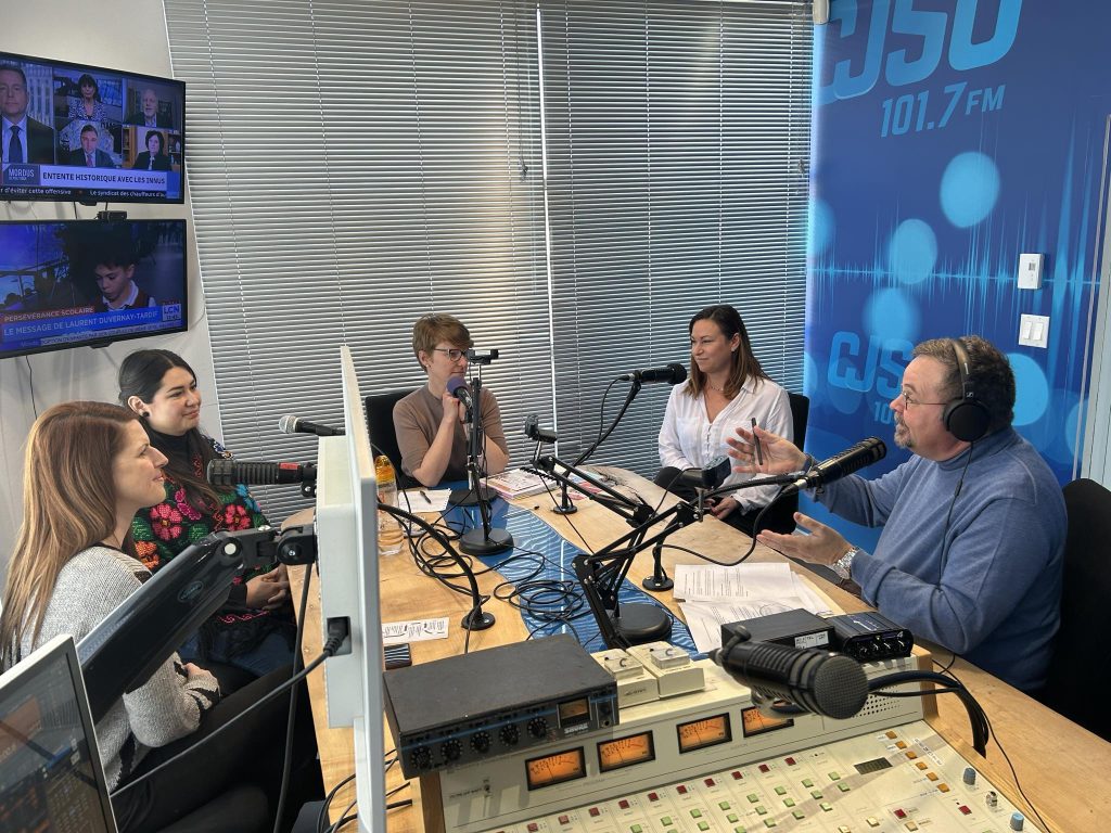 Denis Marion et ses invitées: Marilyne Dumas, Évelyne Bellehumeur, Marie-Evangéline Pouyer-Crostwaith et Diana Lopez.