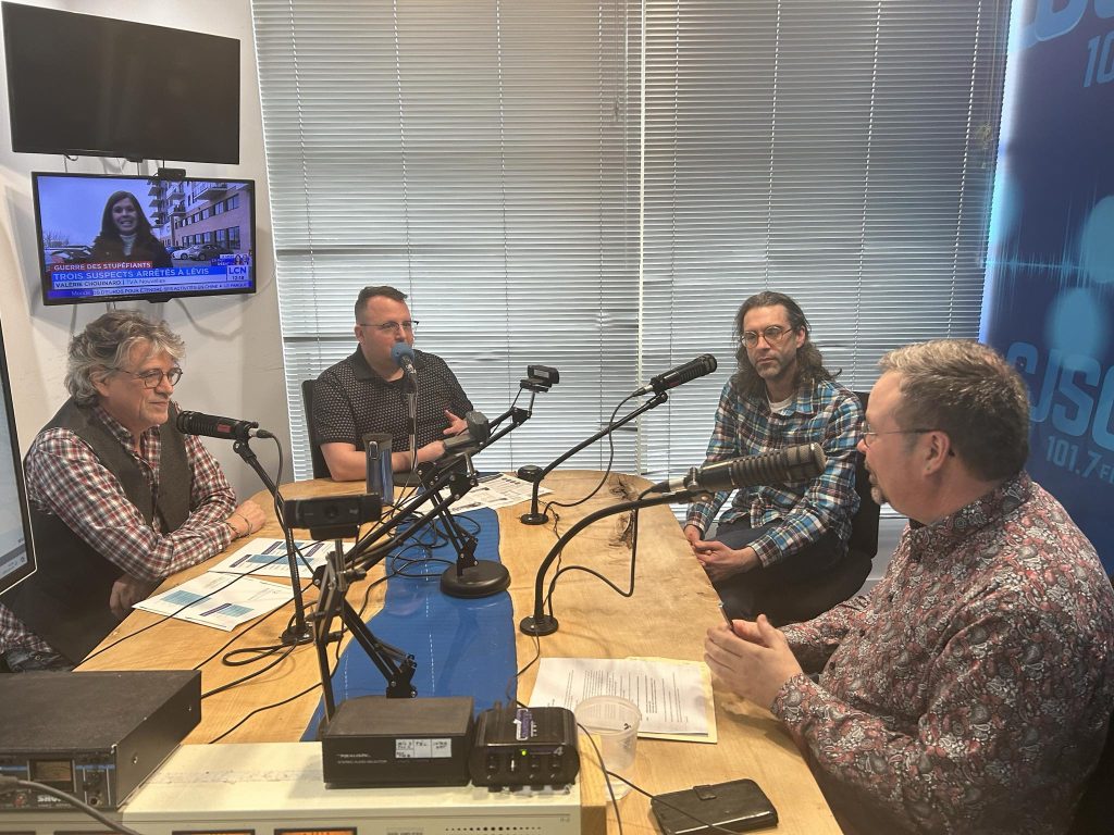 Denis Marion reçoit Alain Larouche, directeur d’Azimut diffusion, Mathieu Brochu et David Lesiège de la CDC.