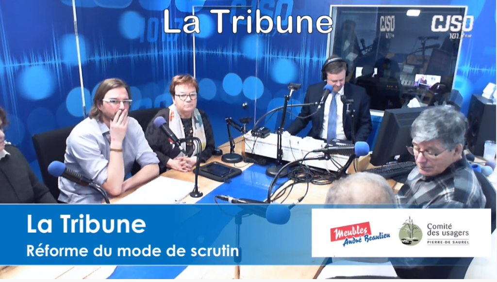 Le gouvernement du Québec a déposé, le 25 septembre dernier, un projet de loi pour réformer le mode de scrutin. Ce projet de réforme fera bientôt l’objet de consultations publiques et possiblement d’un référendum. C’est pour favoriser la discussion autour d’un nouveau mode de scrutin qui serait mieux adapté à la société actuelle que les Organisations unis pour l’indépendance du Québec (OUI Québec) et le Mouvement Démocratie Nouvelle (MDN) ont entrepris une tournée du Québec. Ils seront au cégep de Sorel-Tracy le 18 mars prochain, entre 19h et 21h. Invités à commenter la réforme du mode de scrutin, hier midi, à La Tribune, les ex-députés Albert Khelfa et Sylvain Simard n’ont ni l’un ni l’autre démontré d’enthousiasme. On peut revoir l’édition de La Tribune consacrée à la réforme du mode de scrutin sur notre page facebook.