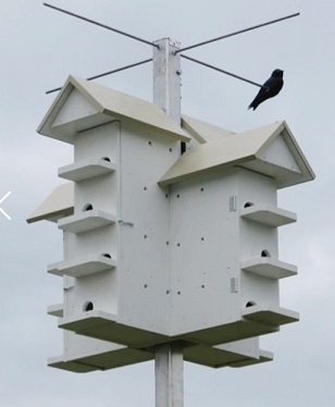 Contrairement à d’autres espèces, les hirondelles noires nichent en colonies regroupant plusieurs couples, ce qui explique l’importance du nichoir à loges multiples. Dix nichoirs d’un autre modèle ont été installés l’année passée, cette fois, pour les hirondelles bicolores et les merles bleus de l’Est.
