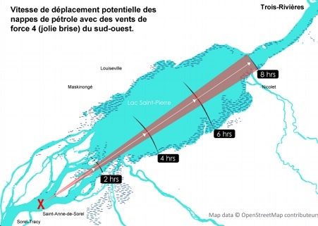 Une marée noire pourrait traverser le Lac Saint-Pierre en à peine huit heures, selon une étude publiée hier par Équiterre et le Conseil des Canadiens.