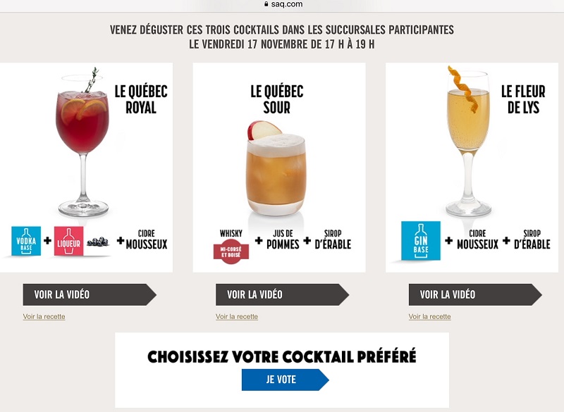 Votez, via le SAQ.com, pour le cocktail qui deviendra le cocktail officiel du Québec. Passez en succursale pour goûter tous les cocktails en nomination.