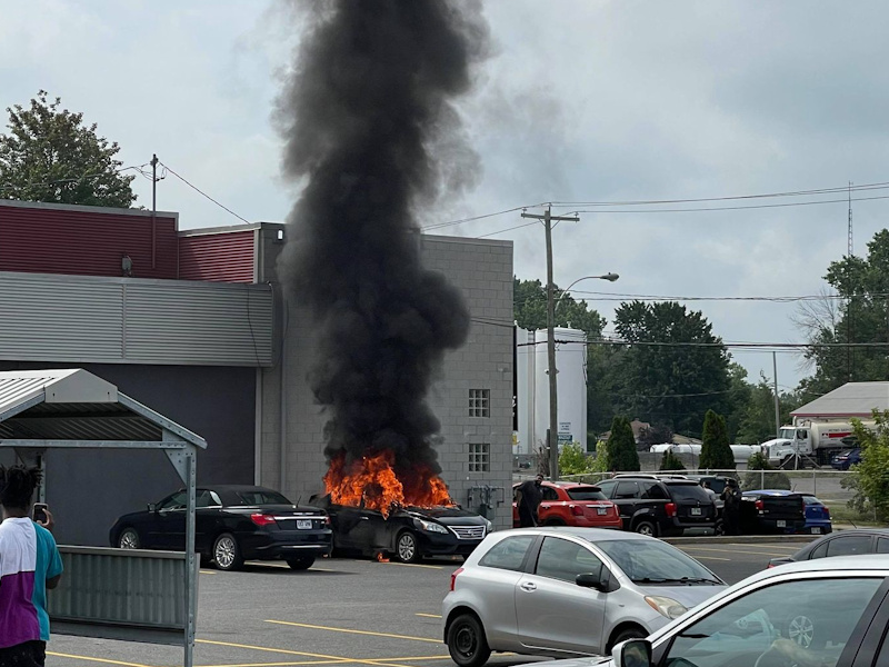 Les pompiers ont été appelés sur place pour éteindre le brasier un peu avant midi dans le stationnement du Provigo rue Victoria à Sorel-Tracy.