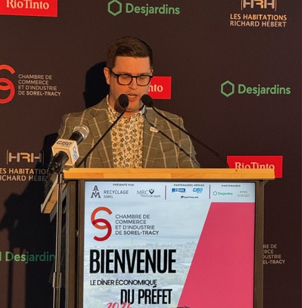 Le préfet de la MRC de Pierre-De Saurel, Vincent Deguise, a partagé, jeudi midi, à une centaine de personnes réunies dans le cadre d’un dîner de la Chambre de commerce et d’industrie de Sorel-Tracy, sa lecture des défis que la MRC de Pierre-De Saurel doit relever.  Il a invité la région à se doter d’une véritable vision de développement. En reconnaissant que les tentatives précédentes visant à réaliser une planification stratégique territoriale n’ont pas été couronnées de succès, il a relancé l’idée. Le préfet a insisté sur le fait que, depuis déjà quelques années, la région a réussi à maintenir une mobilisation qui présente à ses partenaires extérieurs et à ses concitoyens cohérence et cohésion. Il faut se donner les outils pour consolider cette cohésion et en maximiser la portée, a-t-il soumis.