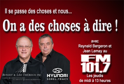 Nous recevions ce midi, Me Christine Marchand des communications de la Commission scolaire de Sorel-Tracy pour parler des réductions du nombre de commissaires prévues pour le prochain scrutin en 2014. En deuxième partie d’émission Mmes Frances Vadnais et Dominique Ouellet nous explique le refus de la ville d’autoriser Mme Vadnais à implanter un potager sur le terrain adjacent à sa propriété même si le propriétaire de ce dernier lui a donné son approbation.